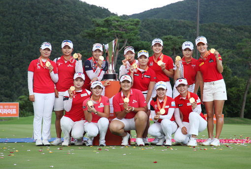 9일 경북 경주 블루원디아너스CC 밸리·레이크코스(파72)에서 열린 싱글매치 플레이에서 4승4무4패로 동률을 이뤄 6-6으로 비겼다. 그러나 7일 열린 포볼 매치플레이 점수를 보태 최종합계 10.5-7.5로 이겼다.