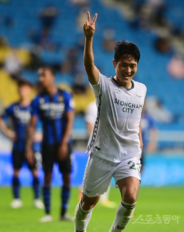 성남 나상호가 후반전에 두 번째 골을 성공시킨 뒤 세리머니를 하고 있다.