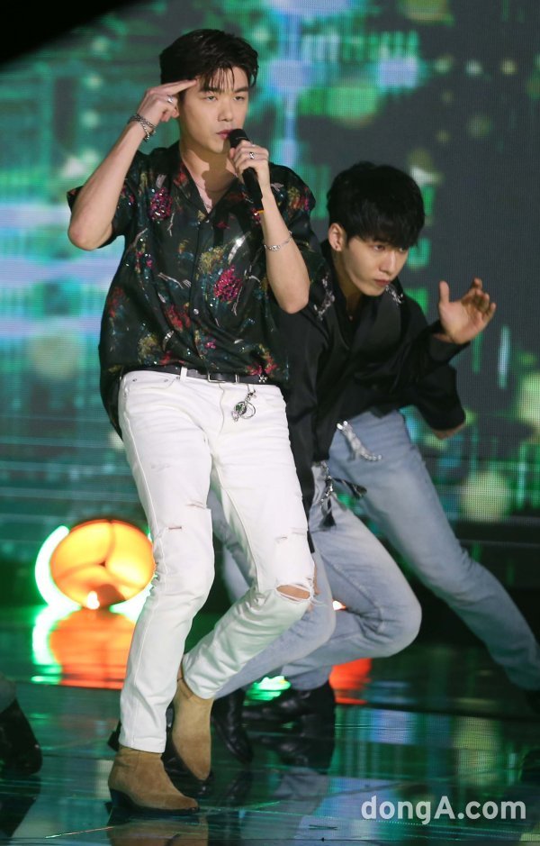 가수 에릭남이11일 오후 서울 마포구 SBS프리즘 타워에서 열린 음악 방송 프로그램 \'더쇼\' 생방송 무대에서 선보이고 있다.