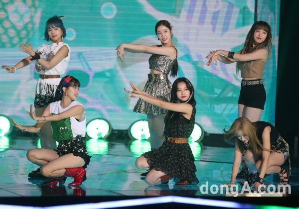 그룹 에이프릴이 11일 오후 서울 마포구 SBS프리즘 타워에서 열린 음악 방송 프로그램 \'더쇼\' 생방송 무대에서 공연을 선보이고 있다.