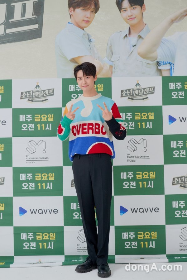 가수 이진혁이 12일 온라인으로 진행된 웨이브 오리지널 웹 예능 ‘소년멘탈캠프’ 랜선 제작발표회에 참석해 포토타임을 갖고 있다.