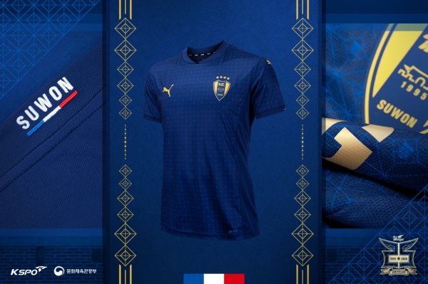 기념 유니폼은 진청색에 25주년 로고를 패턴 처리하였고, 목 뒷편에 수원삼성을 상징하는 청백적 포인트를 삽입해 아이덴티티를 구현했다.