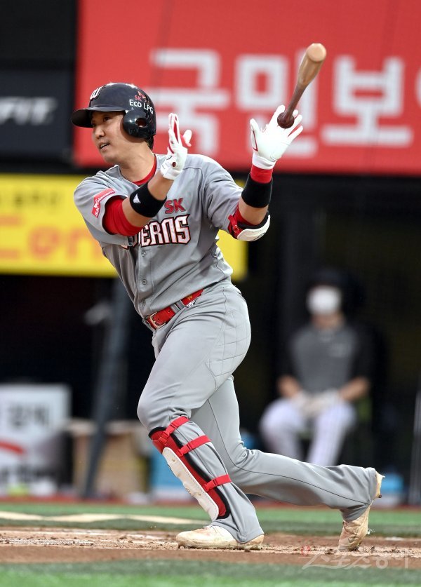 1회초 2사 2,3루 SK 이흥련이 2타점 좌전 안타를 치고 있다.