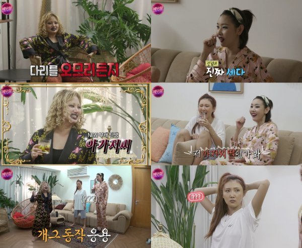 본격적으로 연습을 위해 각자 셀프로 촬영해온 동작들을 시청하기 시작, 먼저 박나래(조지나)는 운동과 몸 개그를 넘나드는 자태로 쉴 새 없이 웃음을 유발한다. 아찔한 뒤태를 자랑하는 동작에 유튜브에서조차 모자이크를 부르는가 하면 운동 동작 중 난데없이 과격한 멱살잡이까지 이어진 것. 이에 한혜진(사만다)은 “동작들이 다 지저분해”라며 시청 포기를 선언했지만, 자신의 차례가 다가오자 개그욕심을 폭발시키며 꿀잼 케미를 뽐낸다.