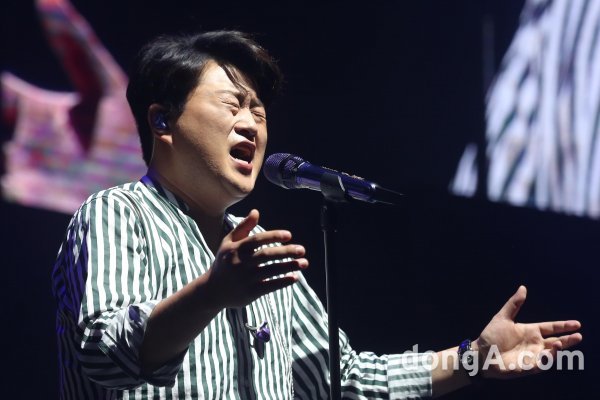 가수 김호중이 15일 오후 서울 강서구 KBS아레나에서 열린 첫 단독 팬미팅 \'우리家 처음으로\' 리허설에서 열창하고 있다.