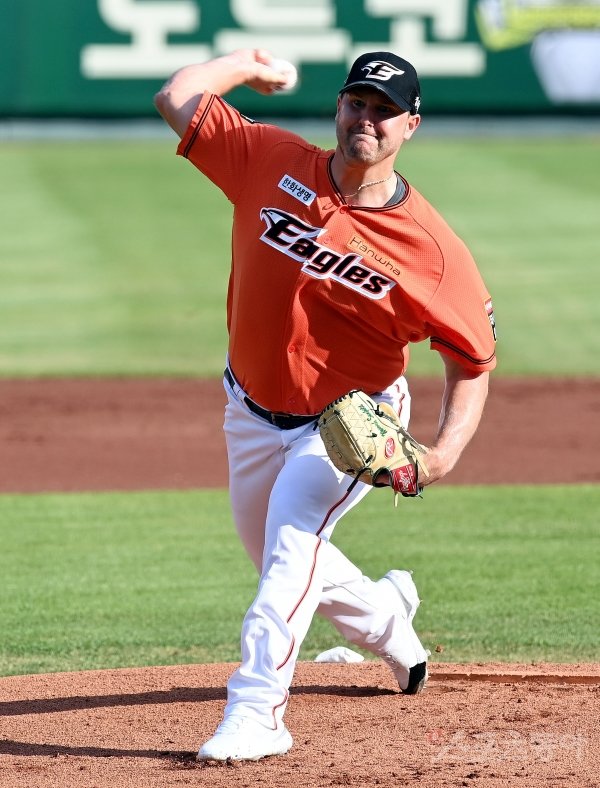 16일 대전 한화생명이글스파크에서 ‘2020 신한은행 SOL KBO리그’ 한화 이글스와 삼성 라이온즈의 경기가 열렸다. 한화 선발투수 서폴드가 힘차게 볼을 던지고 있다.