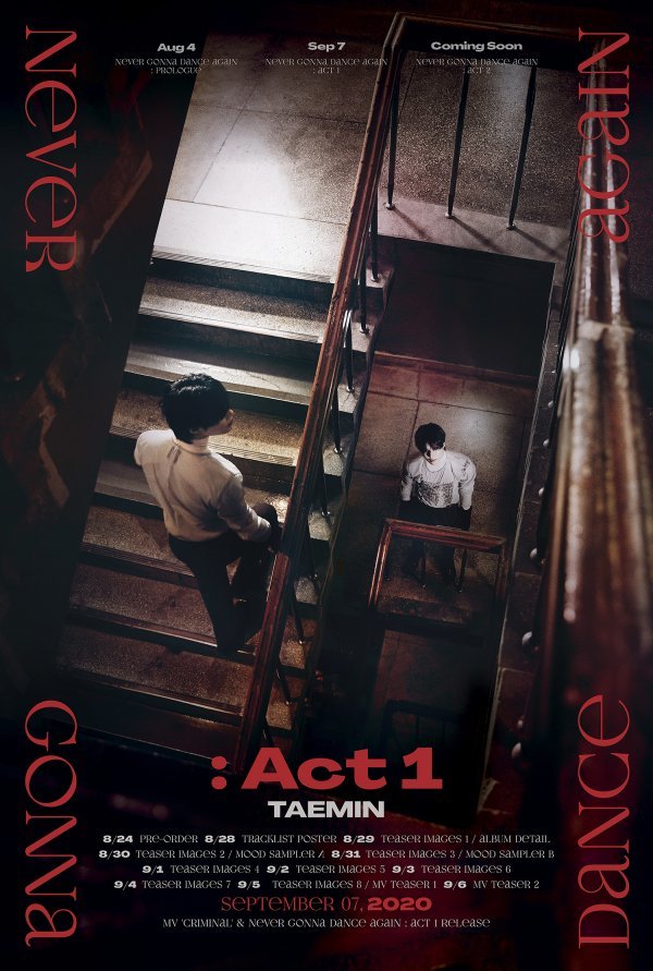 이번 정규 3집 ‘Never Gonna Dance Again’은 선공개된 프롤로그 싱글에 이어 ‘Act 1’과 ‘Act 2’ 2개 앨범이 순차 발매되며, 태민이 지금까지 보여준 아이덴티티를 공고히 하면서도 아티스트로서 새로운 자아를 찾아가는 고민과 도전의 서사를 영화 같은 스토리와 음악으로 담았다.
