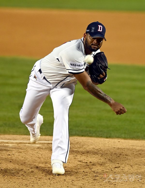 선발 투수로 등판한 두산 알칸타라가 역투하고 있다.