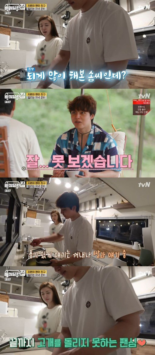 이날 갯장어무침 등 저녁식사를 준비하러 주방으로 들어온 여진구는 쌀을 씻고 있었다. 그 사이 하지원이 주방으로 들어왔다. 하지원은 여진구가 쌀을 씻는 모습에 “되게 많이 해봤나보다”라고 말했다.