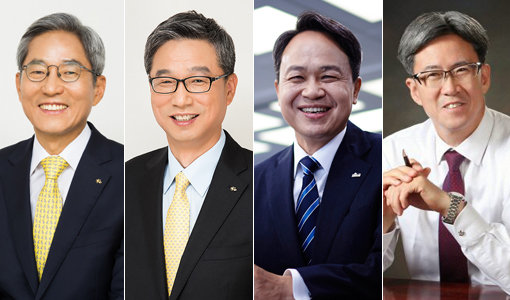 하반기 임기가 만료되는 금융권 CEO들의 거취에 관심이 모이고 있다. 윤종규 KB금융 회장, 허인 KB국민은행장, 진옥동 신한은행장, 이동빈 Sh수협은행장(왼쪽부터). 사진제공|KB금융·KB국민은행·신한은행·Sh수협은행
