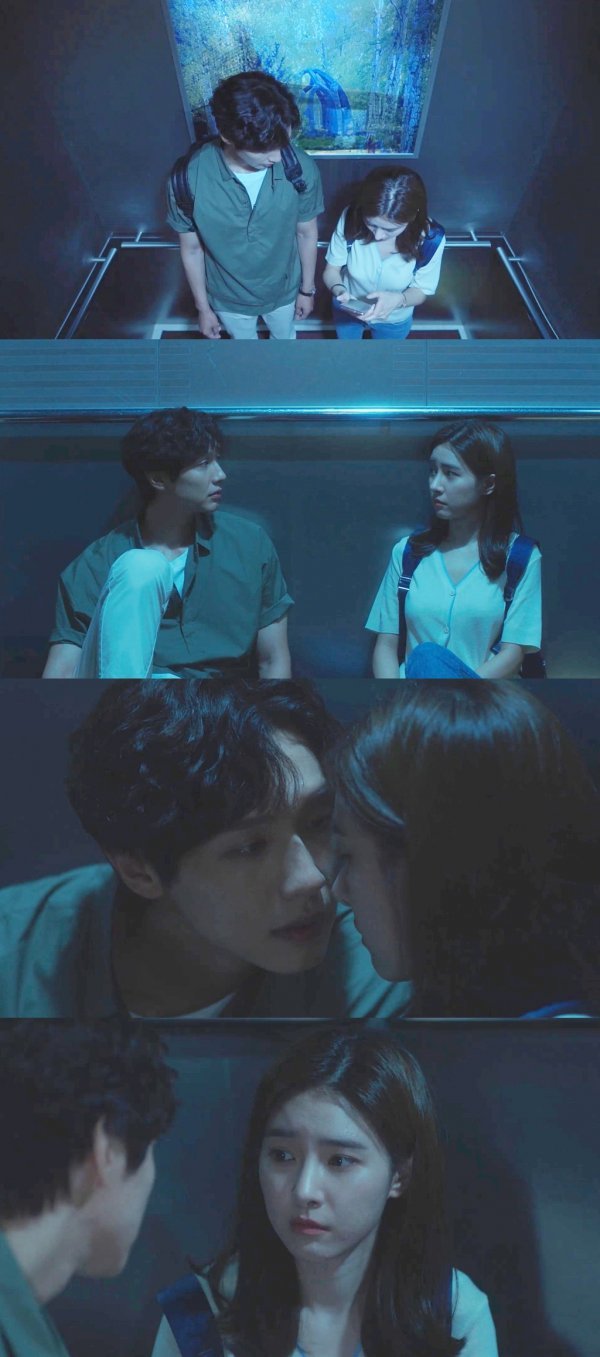 사진 속 차강우와 이나은은 나란히 엘리베이터에 탑승한 모습이다. 그러나 엘리베이터 안은 전기가 나간 듯 껌껌하게 불이 꺼져 있는 상황. 즉 엘리베이터가 멈췄음을 짐작할 수 있다. 이에 차강우와 이나은은 나란히 엘리베이터 바닥에 앉아 서로를 다독이며 마음을 다잡고 있다.