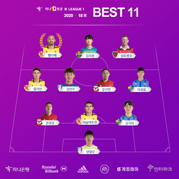 [하나원큐 K리그1 2020 18R MVP, 베스트11, 팀, 매치]