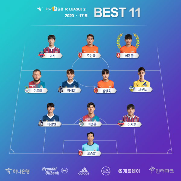 [하나원큐 K리그2 2020 17R MVP, 베스트11, 팀, 매치]