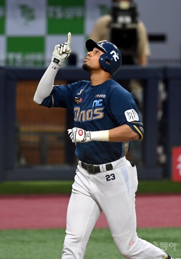 3회초 무사 1루 NC 알테어가 중월 투런 홈런을 날리고 그라운드를 돌며 세리머니를 하고 있다.