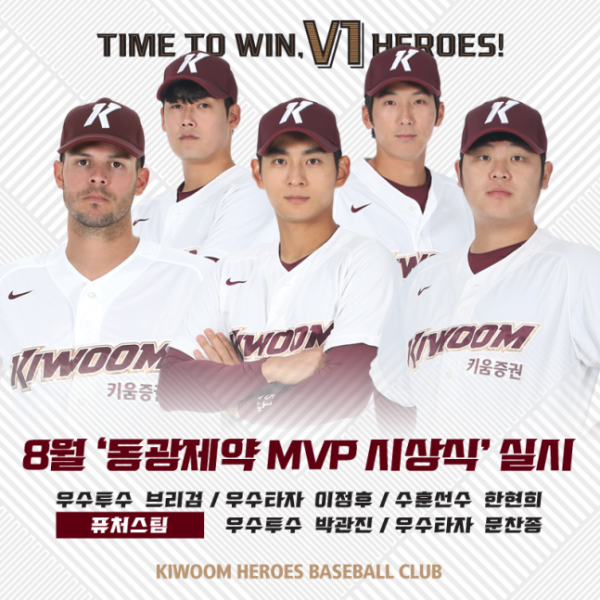 프로야구 키움 히어로즈가 5일 오후 5시 서울 고척스카이돔에서 열리는 kt wiz와의 홈경기에 앞서 구단 8월 MVP 시상식을 진행한다.