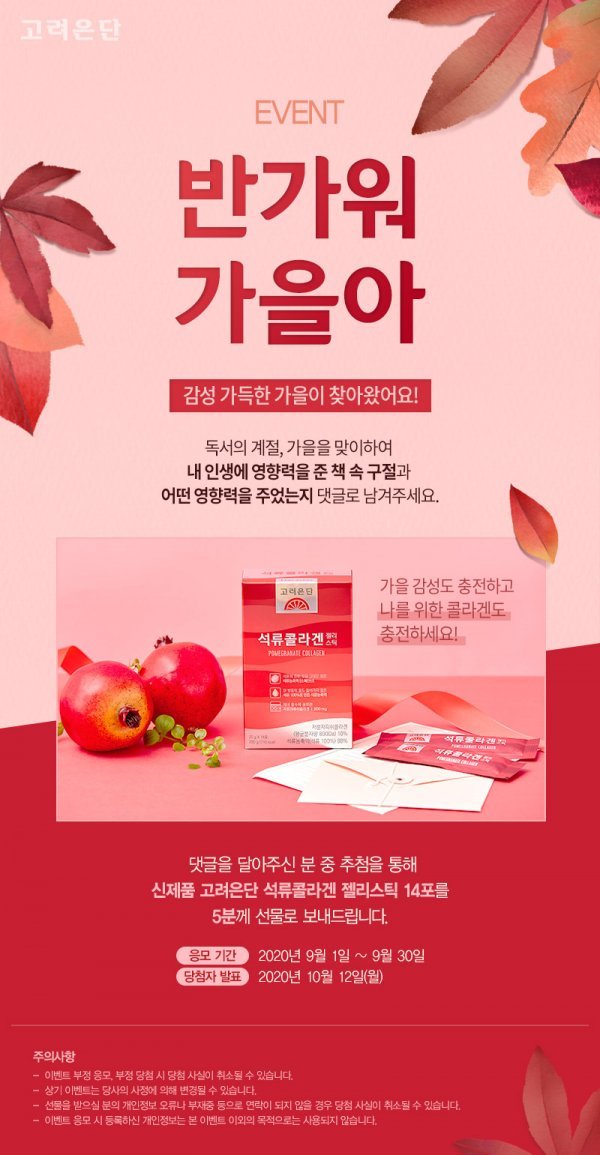 고려은단이 ‘반가워 가을아’ 이벤트를 30일까지 진행한다.