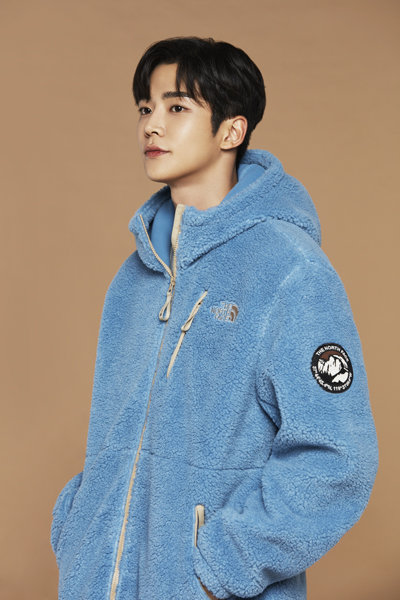 아웃도어의 계절 가을시즌을 앞두고 아웃도어 브랜드들이 젊은 고객층을 타깃으로 한 친환경 제품들을 잇달아 출시하고 있다. 페트병 100% 리사이클링 소재를 활용한 ‘노벨티 리모 후드 플리스’를 입은 노스페이스 홍보대사 로운. 사진제공|노스페이스