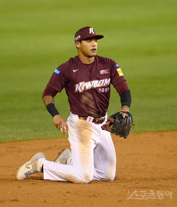 10일 서울 잠실야구장에서 ‘2020 신한은행 SOL KBO 리그’ 키움 히어로즈와 LG 트윈스 경기가 열렸다. 7회말 1사 1루 상황에서 키움 러셀리 내야 땅볼 타구를 실책한 후 아쉬워하고 있다.