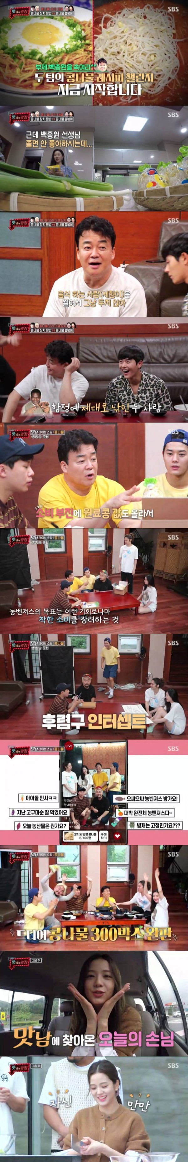 이날 양세형과 유병재, 김희철과 게스트 선미는 팀을 이뤄 시청자가 공모한 레시피로 콩나물 요리 대결을 펼쳤다. 양세형과 유병재는 콩나물 참치덮밥을, 김희철과 선미는 콩나물 쫄볶이를 레시피에 따라 완성해냈다. 지난 방송에서 계량 없이 묵은지 콩나물국을 뚝딱 만들어냈던 선미는 이날도 야무진 요리 솜씨를 발휘했다. 그런가 하면 백종원을 향한 팬심을 드러냈던 선미는 “선생님 쫄면 안 좋아하시는데“라며 식성까지 파악하고 있는 ‘찐팬’임을 인증해 멤버들을 놀라게 했다.