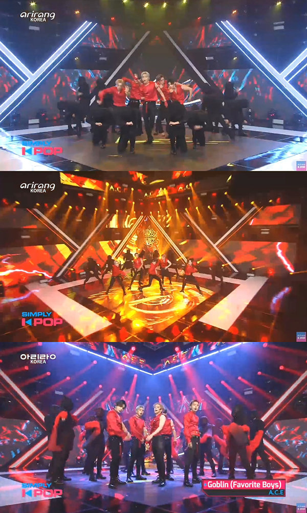 11일 오후 방송된 아리랑TV ‘심플리 케이팝’에 출연해 신곡 ‘도깨비’의 무대를 꾸몄다. 레드&블랙으로 매치한 의상을 입고 매력을 뽐낸 에이스는 흔들림 없는 라이브와 멤버 찬을 필두로 한 열정적인 퍼포먼스로 국내외 팬들의 폭발적인 반응을 불러일으켰다.