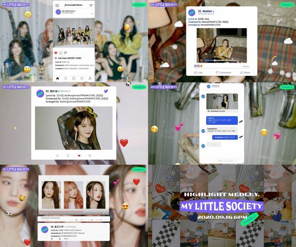 인스타그램, 트위터, 유튜브 등 각종 SNS 플랫폼 콘셉트로 구성된 영상에는 ‘My Little Society’에 수록된 총 5개 트랙의 음원 하이라이트와 프로미스나인 멤버들의 오피셜 포토가 함께 담기며 이목을 집중시켰다.