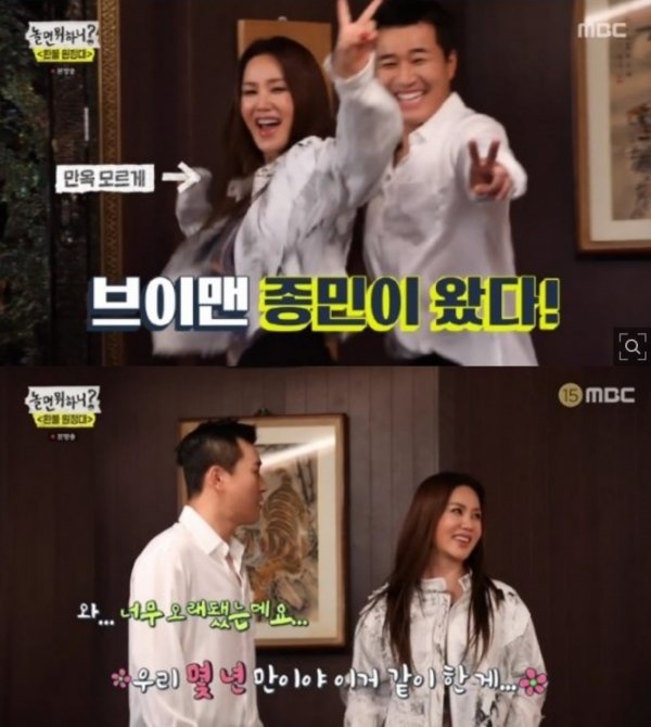 MBC 예능 프로그램 '놀면 뭐하니' 12일 방송에서는 김종민과 다시 만나게 된 엄정화의 모습이 그려졌다.