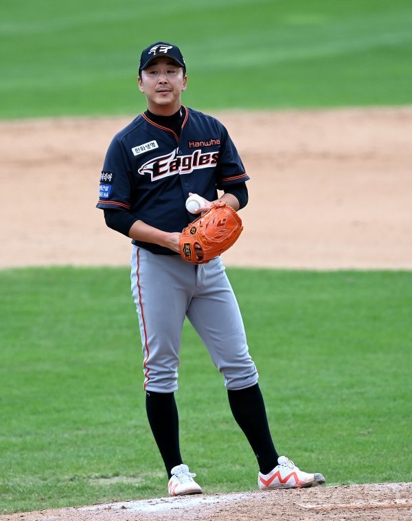 9회말 1사 1, 3루에서 kt 황재균에게 동점 희생타를 허용한 한화 정우람이 아쉬워하고 있다.