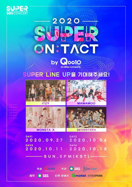 케이팝 스타들이 총출동하는 대규모 온라인 콘서트가 펼쳐진다. SBS는 27일부터 10월18일까지 4주 동안 세븐틴, 몬스타엑스, 잇지(ITZY), 스트레이 키즈, 투모로우바이투게더 등이 출연하는 ‘슈퍼콘서트-2020 슈퍼 온택트’를 연다. 매주 일요일 오후 8시 온라인 스트리밍 플랫폼을 통해 전 세계 생중계한다. SBS는 당초 올해 상반기 대구 등에서 ‘슈퍼콘서트’의 대규모 오프라인 무대를 열기로 했다가 신종 코로나바이러스 감염증 확산 여파로 비대면 온라인 콘서트로 전환했다.