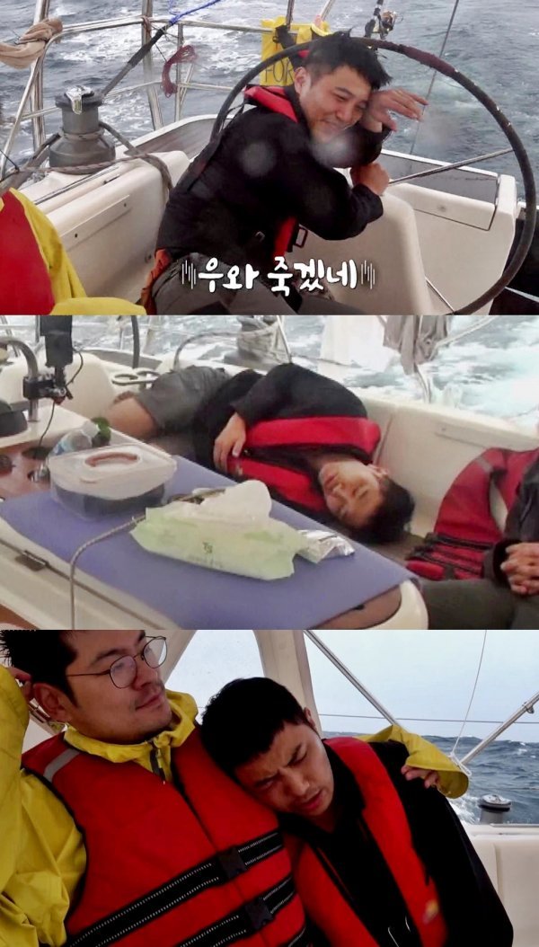 ‘요트원정대’ 진구가 뱃멀미로 속수무책 쓰러진다.