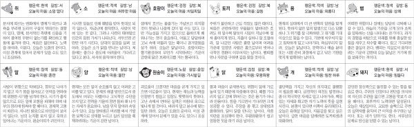 ▲ 오늘의 운세 도표. 스포츠동아