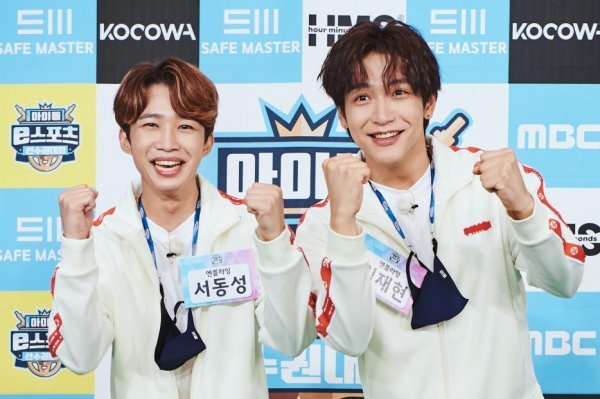 그룹 엔플라잉의 서동성(왼쪽)과 김재현이14일 오후 MBC 추석특집 예능 프로그램 <아이돌 e스포츠 선수권대회> 행사에 참석해 포즈를 취하고 있다.
