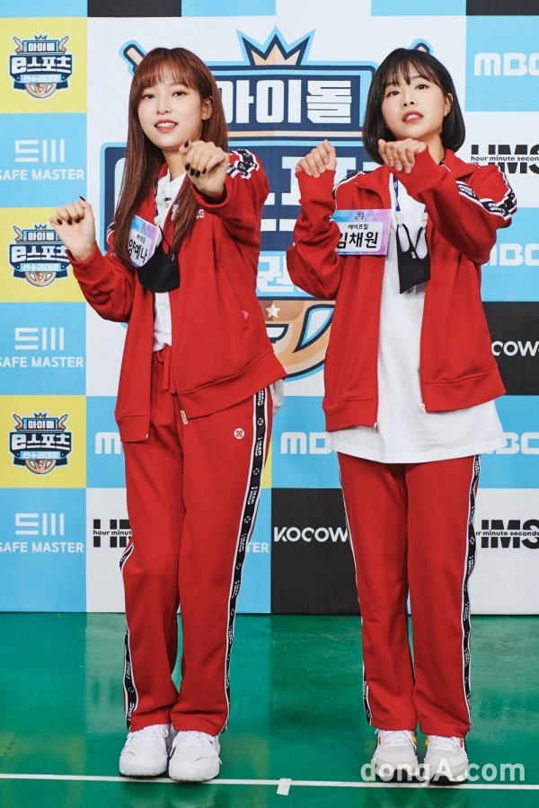 그룹 에이프릴의 예나(왼쪽)와 채원이14일 오후 MBC 추석특집 예능 프로그램 <아이돌 e스포츠 선수권대회> 행사에 참석해 포즈를 취하고 있다.