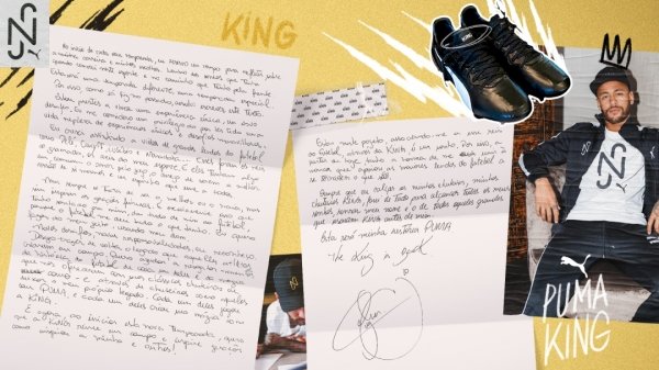 네이마르가 전한 친필 편지를 통해 “나는 펠레, 크루이프, 에우제비오, 마라도나 같은 위대한 축구 전설들의 활약이 담긴 영상을 보며 성장기를 보냈다. 이들은 경기장의 왕(King) 이자, 내 영웅이다. 이 영웅들이 푸마 킹(PUMA KING)과 함께 남긴 발자취를 따라 축구의 유산을 이어 나가고 싶다. 이제 나의 축구화가 된 푸마 킹은 왕들이 거쳐온 위대한 명성에 걸맞게 최선을 다할 것이다. 앞으로 나의 푸마 역사가 시작될 것이다. 왕이 돌아왔다!“는 내용과 함께 각오를 밝혔다.