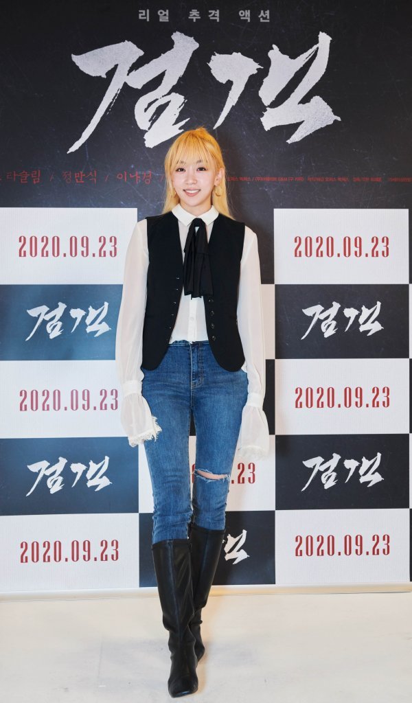배우 이나경이 17일 오전 영화 \'검객\' 온라인 제작보고회에 참석해 포즈를 취하고 있다.