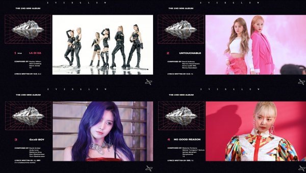 하이라이트 메들리 영상에는 타이틀곡 ‘라 디 다(LA DI DA)’를 포함한 총 4개 트랙의 음원 일부가 담겨있다. 여기에 강렬한 걸크러시 매력을 뽐내는 에버글로우 멤버들의 재킷 촬영 현장까지 담겨있어 보고 듣는 재미를 더했다.