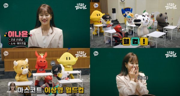 이나은이 등장에 뜨거운 환영 인사로 교실을 시끌벅적 하게 만든 마스코트들은 이나은과 공통점을 찾아 어필하는가 하면 사심 가득한 질문을 던져 이나은을 활짝 웃게 만들었다는 후문. 특히 이나은의 원픽(Pick)을 찾는 ‘마스코트 이상형 월드컵’이 열리자 마스코트들은 춤, 개인기, 삼행시까지, 각종 개인기와 매력을 발산해 수업 분위기를 후끈 달궜다고 전해져 기대를 극대화시킨다. 과연 어떤 마스코트가 이나은의 원픽으로 뽑혔을지, 흥미진진한 결과가 밝혀질 예정이다.