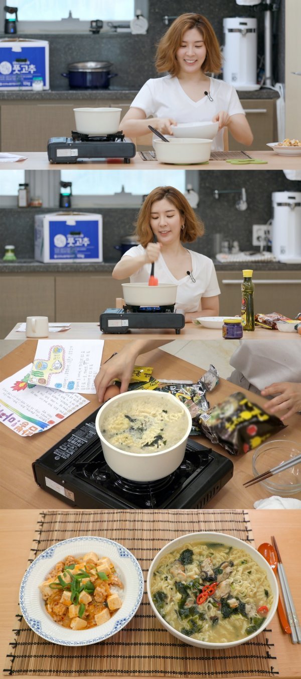 그렇게 호기심이 쏠린 가운데 함연지의 특별한 아침밥상 준비가 시작됐다. 함연지는 “나는 라면집 딸이니까 라면으로 할 수 있는 요리를 해보겠다. 내가 발견한 라면 꿀조합이다”라고 말하며 집에 있는 3가지 종류의 ‘가문의 라면’을 꺼냈다고 한다. 함연지가 기존의 출시된 여러 종류의 라면 제품과 즉석식품을 통해 만든 아침 밥상 메뉴는 ‘굴짬뽕미역국라면’과 ‘짬뽕마파두부덮밥’이었다고.
