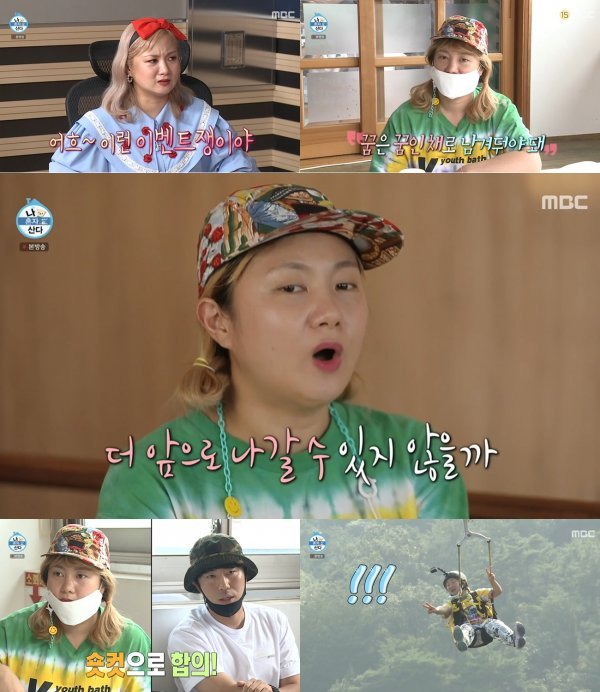 한편 박나래는 집라인을 타러 가는 차 안에서 신나는 댄스곡에도 심란한 마음을 숨기지 못했다. 결국 이시언에게 같이 손잡고 뛰면 안 되겠냐며 약한 모습을 보였지만, 곧 "썩은 동아줄이라도 잡는다고..."라며 반전 속마음을 고백해 안방극장에 대폭소를 안겼다.