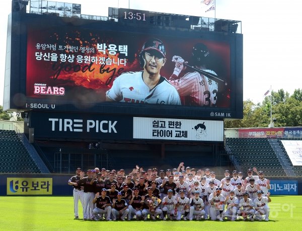 20일 서울 잠실야구장에서 ‘2020 신한은행 SOL KBO 리그’ LG 트윈스와 두산 베어스 경기가 열렸다. 경기 전 올 시즌을 마치고 은퇴를 하는 LG 박용택이 잠실 두산전 경기 고별식을 가졌다. 양팀 선수들이 기념촬영을 하고 있다.