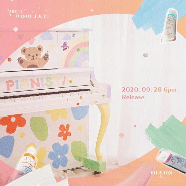 공개된 사진에는 알록달록 여러 가지 컬러로 꾸며진 피아노와 수채화 물감의 조화가 러블리한 분위기를 자랑한다. 특히 피아노에는 'PIANIST'라는 단어가 적혀있어 새 미니앨범 '캔디 피아니스트'에 대한 궁금증을 자아낸다.