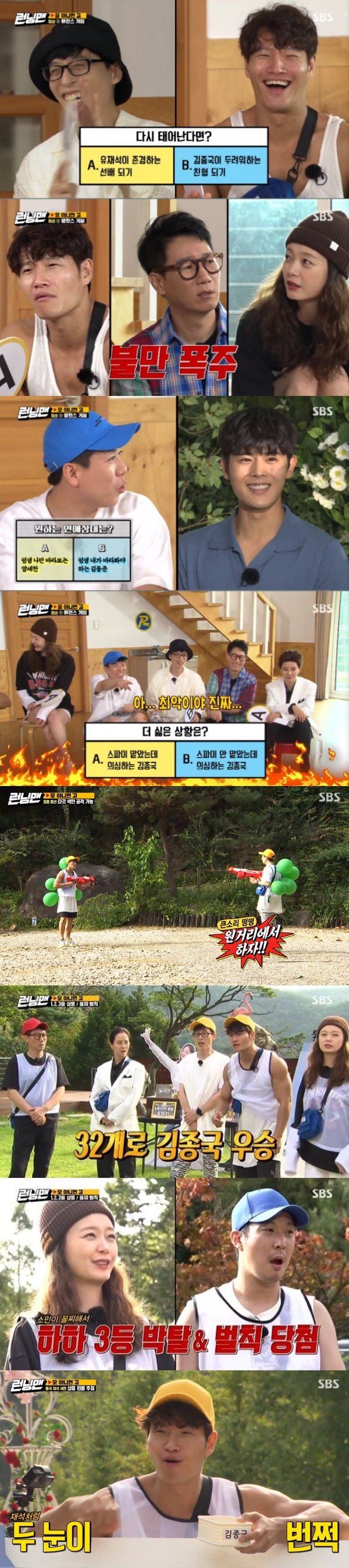 최종미션으로 타깃 색만 공격하는 ‘모 아니면 고’ 레이스가 진행됐다. 서로가 타깃인지 모르는 상황에서 아슬아슬한 상황들이 벌어졌고, 유재석과 김종국은 초반부티 치열한 물총 승부로 눈길을 끌었다. 이후 결과에 따라 미션 1등은 유재석이 차지했지만 최종 등수는 김종국이 1위를 차지했다.