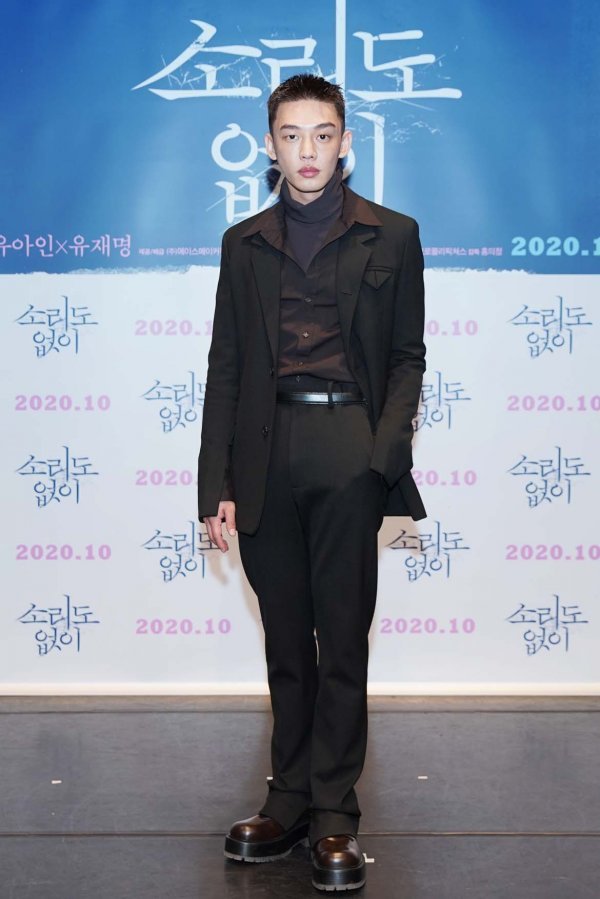 배우 유아인이 21일 오전 영화 \'소리도 없이\' 온라인 제작보고회에 참석해 포즈를 취하고 있다.