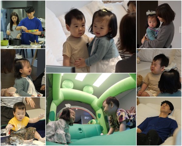 늦둥이 아빠 이필모는 담호와 유담, 아이 둘을 돌보는 극한 육아 체험에 도전했다. 아내들에게 잠시 쉬라며 자신만만했던 처음과는 달리, 개구리 에어바운스 속에서 아이 둘을 케어하던 이필모가 어느새 땀으로 범벅돼 녹다운됐던 것. 이필모는 그럼에도 불구하고 할만하다며 자신감을 드러냈지만, 요거트 촉감놀이를 벌이다가 결국 옷에 하얀 무늬까지 얻으면서 폭소를 자아냈다. 급기야 자녀 계획을 5명이라고 세웠던 이필모가 이를 전면 수정하겠다는 선언하면서, 이필모의 ‘본격 두 아이 육아 체험’에 시선이 모아지고 있다.