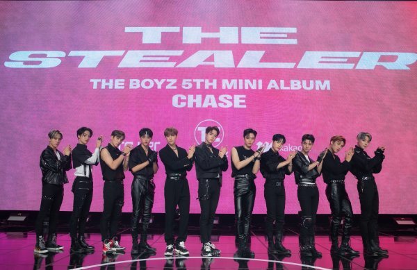 미니 5집 ‘체이스’는 사랑을 추격하는 ‘심(心) 스틸러’ 더보이즈의 치명적이고 강력한 변신을 확인할 수 있는 신보다. 타이틀곡 ‘더 스틸러’는 중독적 사운드와 드라마틱한 구성이 돋보이는 컨템포러리 힙합 장르 곡으로 마음을 훔치는 긴장감 넘치는 추격전을 모티브로 한다. 총 6개 수록곡이 담긴 새 앨범은 오늘(21일) 저녁 6시 발매된다.