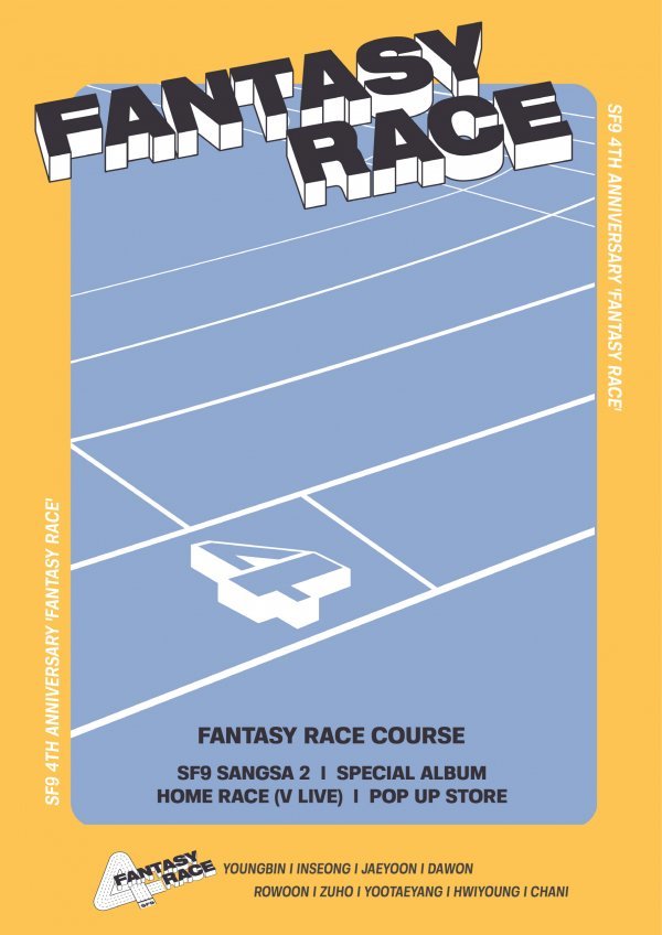 SF9은 올해로 데뷔 4주년을 맞아 항상 고마운 팬들을 위해 4주년 프로젝트 ‘FANTASY RACE(판타지 레이스)’를 진행한다. ‘판타지 레이스’는 길게 호흡하며 달려야 하는 레이스처럼 멤버들과 판타지가 함께 결승점을 향해 나아간다는 의미를 담고 있다.