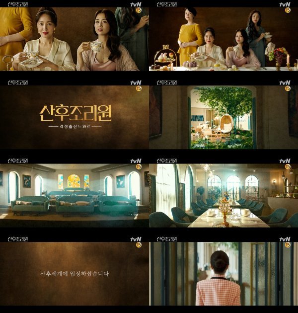 메인 포스터와 함께 공개된 1차 티저 영상은 지금껏 본 적 없는 산후세계의 문을 활짝 열며 강렬한 임팩트를 남긴다. 베일을 벗은 1차 티저 영상은 현진과 은정의 초상화 속 정지된 이미지로 시작한다. 이내 우아하게 찻잔을 들고 있는 현진과 은정, 그리고 혜숙과 루다의 미스터리한 미소가 미묘한 분위기를 자아내며 시선을 압도한다. 이어진 영상 속에는 최상급 산후조리원의 천국 같은 모습들이 그림으로 지나가 호기심을 증폭시킨다. 여기에 “산후세계에 입장하셨습니다”라는 카피와 함께 산후조리원 안으로 들어가는 듯한 현진의 모습은 산후세계에 대한 궁금치를 최대로 끌어올린다.