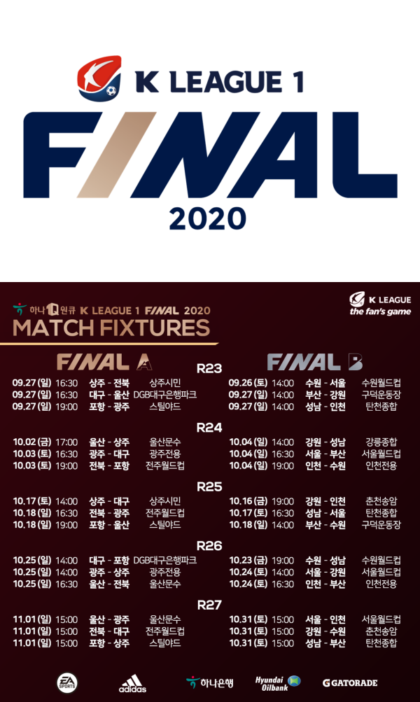 ■ 하나원큐 K리그1 2020 파이널 라운드 일정 및 대진