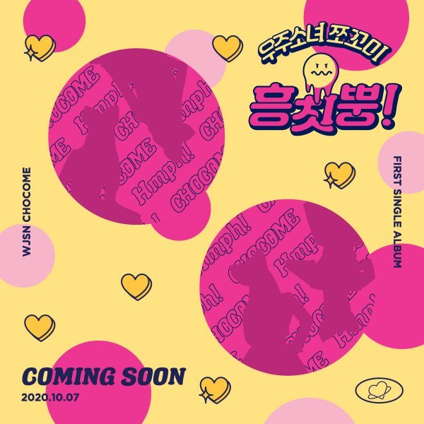 공개된 커밍순 이미지 속 노란 배경 위에는 ‘우주소녀 쪼꼬미’라는 글씨와 함께 삐진 듯한 표정을 짓고 있는 귀여운 이모티콘, 동글동글한 하트가 새겨져 발랄한 분위기를 물씬 풍겼다. 여기에 분홍색 동그라미 속에는 커다란 리본 머리띠를 쓰고 있는 멤버들의 실루엣이 담겨, 아직 공개되지 않은 쪼꼬미 멤버들에 대한 호기심을 자아냈다. 또 커밍순을 통해 쪼꼬미는 첫 번째 싱글 앨범명인 ‘흥칫뿡’을 공개하고 활동 시작 날짜를 ‘2020.10.07’로 확정 지으면서 음악 팬들의 기대감을 한껏 끌어올렸다.