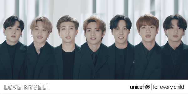 방탄소년단과 빅히트 엔터테인먼트는 ‘나에 대한 사랑이 진정한 사랑의 시작’이라는 ‘LOVE MYSELF’ 캠페인을 3년째 전개해 오고 있으며 이를 통해 유니세프의 #ENDviolence 캠페인을 후원하고 있다. 캠페인을 통한 누적 후원금은 2020년 8월 기준 30억 원을 돌파하며, 방탄소년단의 선한 영향력을 전 세계에 전파하고 있다