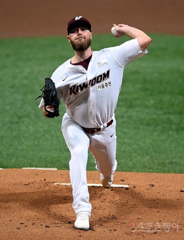키움 선발투수 요키시가 힘차게 볼을 던지고 있다.